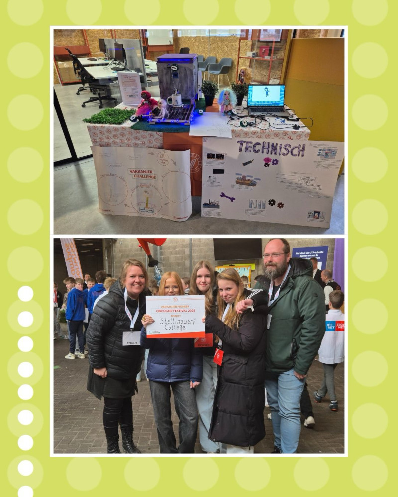 Rocha, Doutzen, Kaylee en Naomi uit mavo 3 kozen even geleden voor het vak PV-IT, dat staat voor Praktijkgericht vak Informatietechnologie. Elk jaar doet onze school met mavo 3-leerlingen die dit vak in hun pakket hebben mee aan de wedstrijd Vakkanjers. Vakkanjers is een educatief programma waarin leerlingen een oplossing bedenken voor een technisch vraagstuk. Dat doen ze aan de hand van urgente en realistische opdrachten. Gisteren vond de halve finale op de Greenland Campus in Emmen plaats. Onze dames brachten hun prototype mee van een watertappunt voor op een festival, waarbij je al dansend gekoeld water kunt tappen zonder water te verspillen. En: ze kregen een plekje toegewezen in de finale op 24 maart! Met de goede tips die ze kregen kunnen de dames nog extra werken aan hun prototype. De ideeën daarvoor zijn al aan het borrelen. Dat belooft wat!